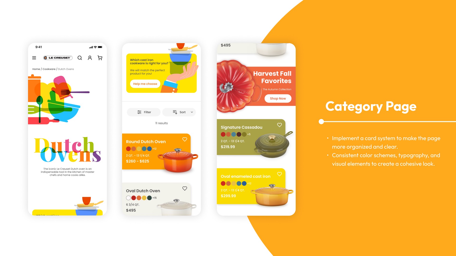 Le Creuset's e-commerce website currently presents a cluttered and unappealing interface, hindering its ability to effectively showcase the brand's identity and provide a personalized shopping experience. By reorganizing information, establishing a clear visual hierarchy, and implementing new features, the website can be transformed into a more engaging and user-friendly platform.