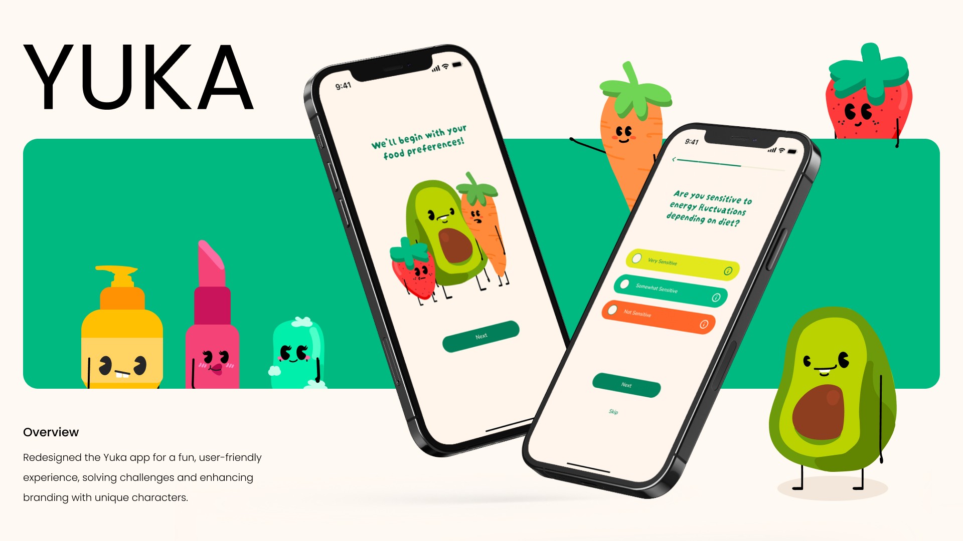 By analyzing user interactions and gathering insights into challenges faced by users, we identified key areas for improvement and reimagined the Yuka app with a playful, personalized user experience, while enhancing the branding through unique characters.